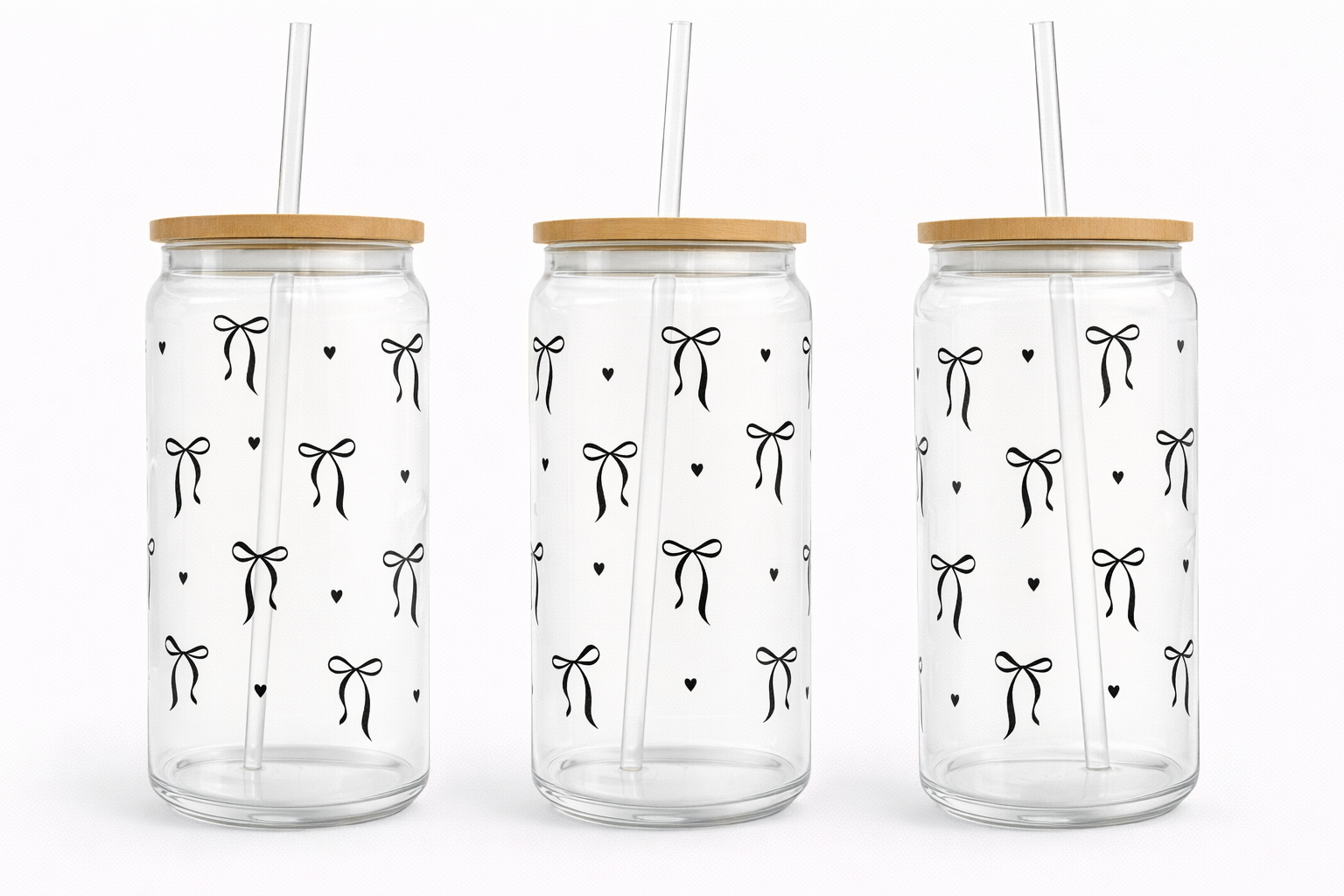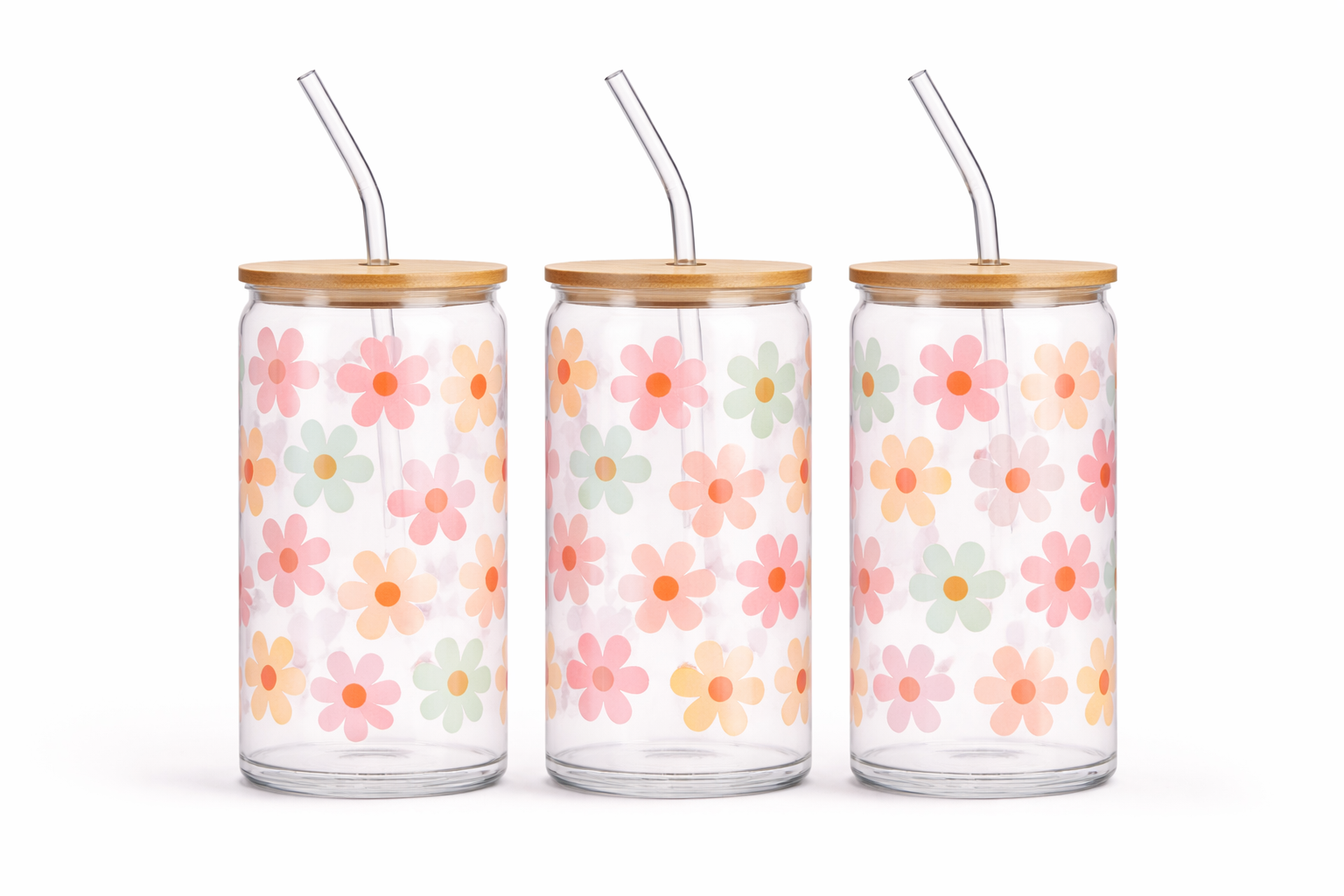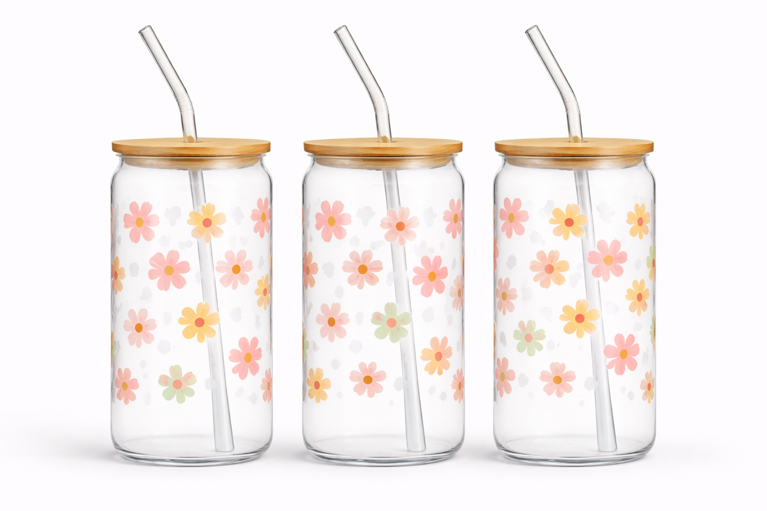 Dieses Trinkglas ist perfekt für deinen Alltag. Egal ob ein warmes oder kaltes Getränk – mit Bambusdeckel, Glasstrohhalm und einem wählbaren UV-DTF Sticker wird jedes Getränk gleich ein bisschen schöner.